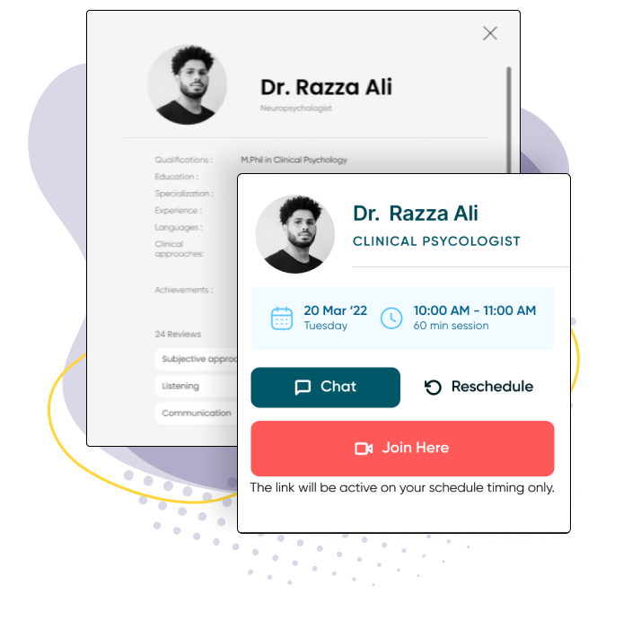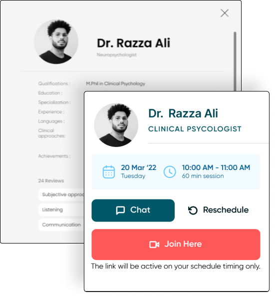 Get started with your journey by registering yourself and providing some basic information. You can then choose an expert aligned with your needs. You can make your decision based on availability, gender, language, expertise or any other preferences.
